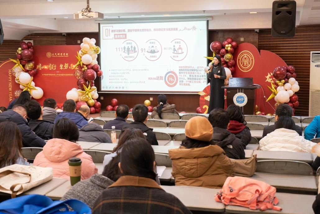 刘琰琰书记对本年度的党建工作、学生工作、宣传工作、科普工作进行总结,她表示新的一年要抓实党支部标准化建设、师德学风建设,做好安全稳定工作,继续做好博士点申报工作和人才队伍建设工作,希望学院全体教师同心同行,聚势而上。