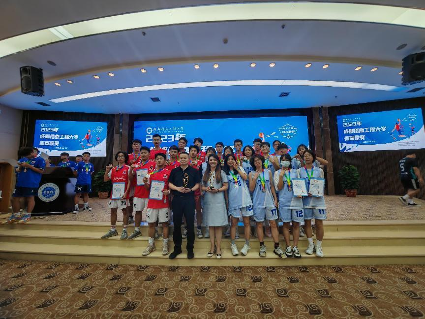 体育代表队由党委书记刘琰琰领队,党委副书记张晓亮、辅导员郝亮为教练带领男子篮球队,女子篮球队,男子足球队,男女混合排球队参加了此次联赛。