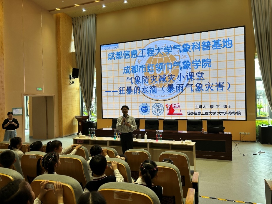气象科普基地-成都市红领巾气象学院的科普师生团队走进成都高新区锦晖小学金融城分校,为该校一、二年级学生开展了以“狂暴的水滴(暴雨气象灾害)”为主题的气象科普小课堂,本次活动主要通过讲解大气科学基础知识及互动科普小实验,启蒙和激发学生的科学素养,拓展科学视野,宣传气象防灾减灾知识。