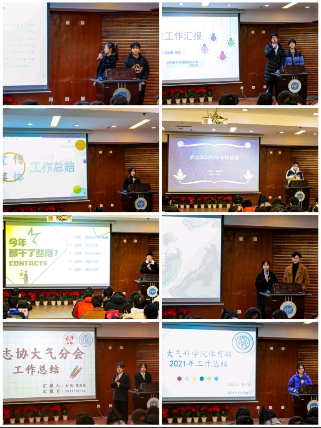 各部门志愿者进行年度工作汇报,介绍了各部门的日常工作及部门举办的活动,对工作中的优点提出表扬,对工作中的问题进行深刻反思并提出改进方案,对未来做出了详细的规划。