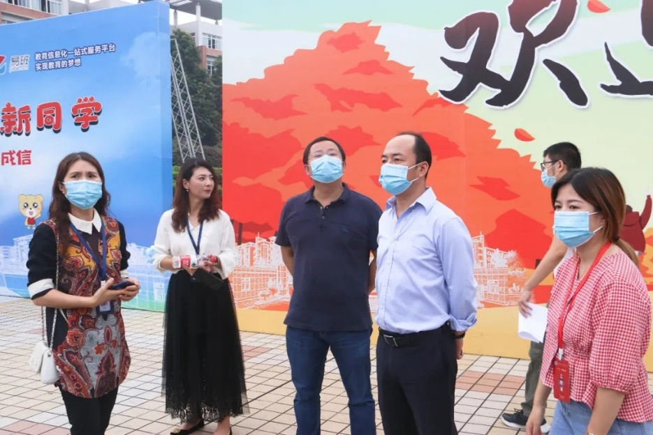 迎新地点看望新生,并和新生亲切交流,合影。