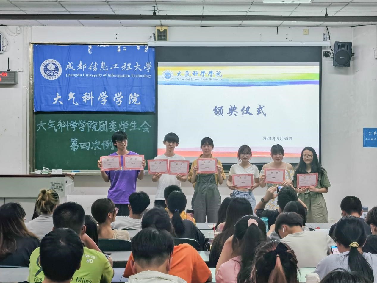团委、学生会对在2020-2021年的工作中表现优异以及在2021年3·23世界气象日系列活动中贡献突出的同学们进行表彰,并颁发奖状。