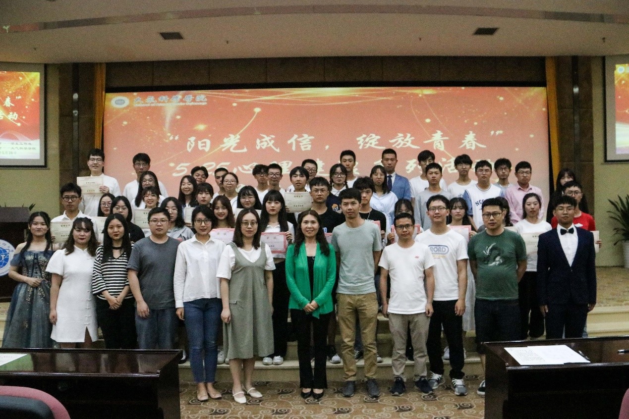 晚会最后是颁奖环节,主持人宣布了各项活动的评比结果。在心理知识竞赛中,阳璐遥、余飞洋、贾玉梅获得了三等奖,王文雨获得了二等奖,聂佳敏获得了一等奖;在声临其境活动中,吕昕悦、张权、梁玉英的配音作品被评为优秀作品;在优秀心理班会策划活动中,大气206班、应气202班、大气204班获得了优秀奖;同时在晚会上对一学年来的优秀心理班会组织班级和为学院心理健康工作作出突出贡献的学生干部进行了表彰,大气201班、大气202班、大气204班、大气207班、应气202班获得了心理班会优秀组织奖;辛治轩、陈杰、秦文霜、吕雪萌、梁晋豪在此次系列活动中获得了突出贡献奖。