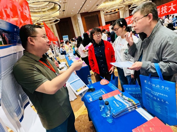活动当天,会场人头攒动,共吸引了近万名考生及家长到场咨询。招生宣传工作组重点介绍了学校2025年本科招生政策、专业设置、录取原则以及就业前景等内容,并围绕考生和家长关心的常见问题进行了详细解答。在宣传过程中,学院还通过宣传资料、视频展示、校史介绍等多种形式,向考生全面展示了学校的办学实力、科研成果和校园生活。