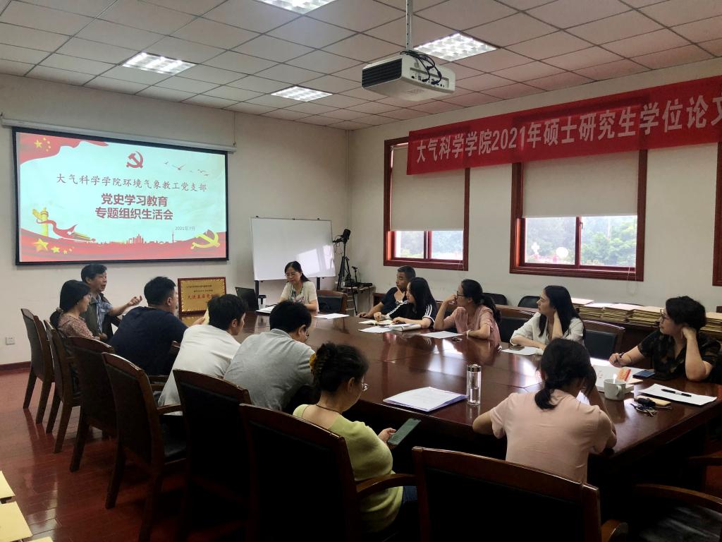 环境气象教工党支部在气象楼310会议室召开了党史学习教育专题组织生活会。会议由党支部书记张小玲主持,支部全体成员参加,学院副院长曾胜兰以普通党员身份参加所在党支部专题组织生活会。