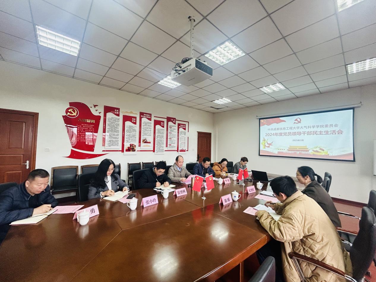 党委在气象楼310召开2024年度党员领导干部民主生活会。学校督导组孔晋红、陈曦到会指导。学院全体党员领导班子成员参加会议,党委委员、党政办公室主任列席会议,会议由学院党委书记张宇主持。