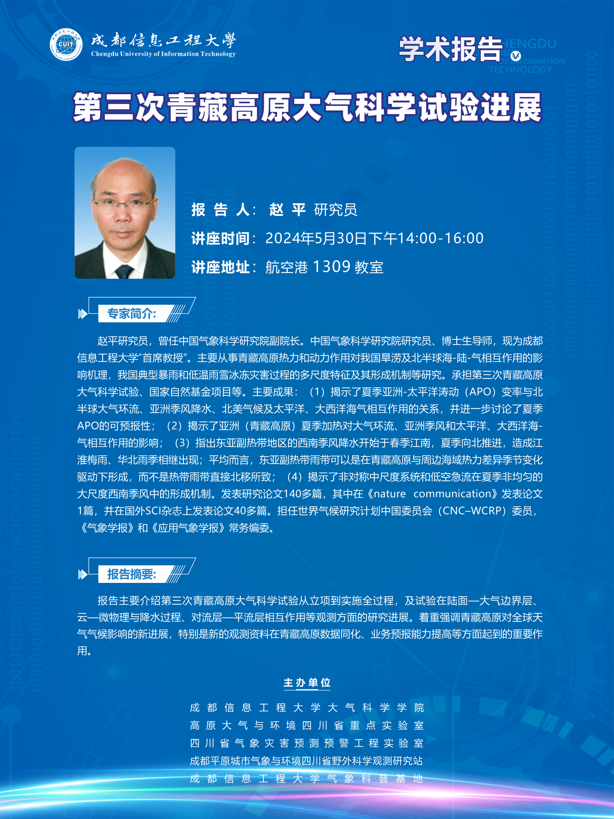 【学术讲座预告】第三次青藏高原大气科学试验进展