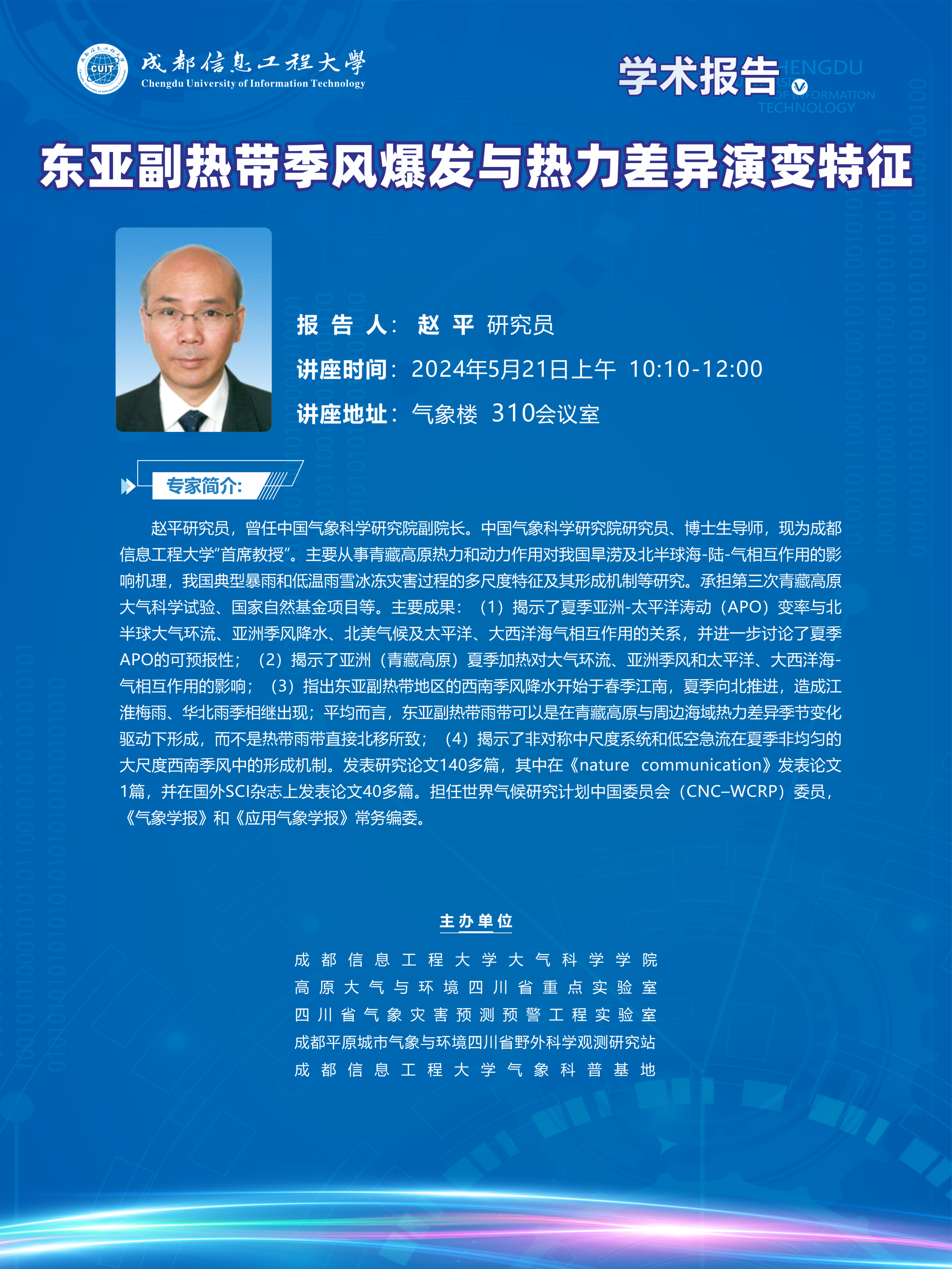 【学术讲座预告】东亚副热带季风爆发与热力差异演变特征