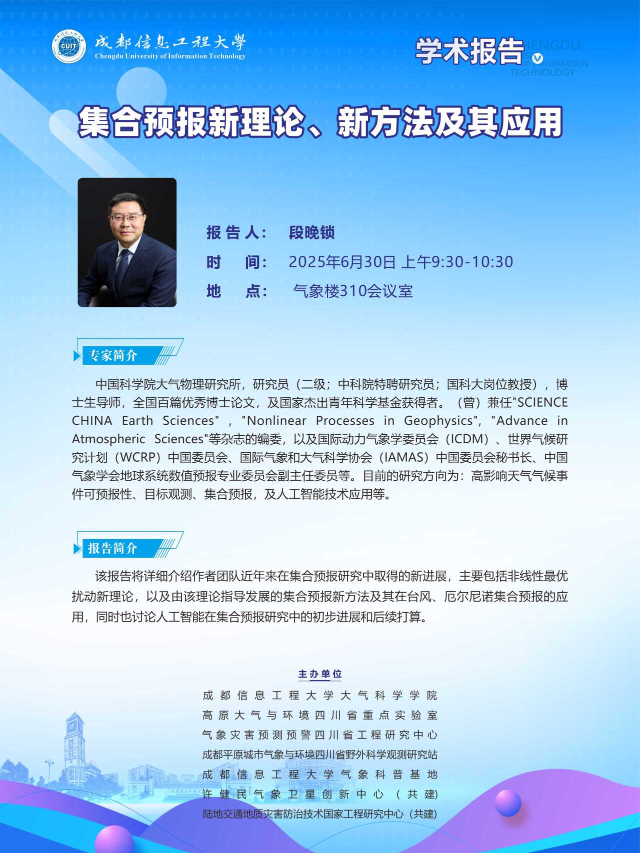 【学术讲座预告】集合预报新理论、新方法及其应用