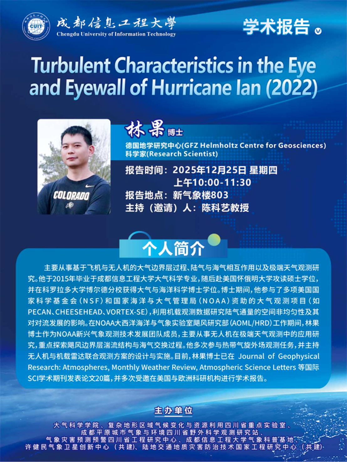 【学术讲座预告】Turbulent Characteristics in the Eye and Eyewall of Hurricane lan(2022)