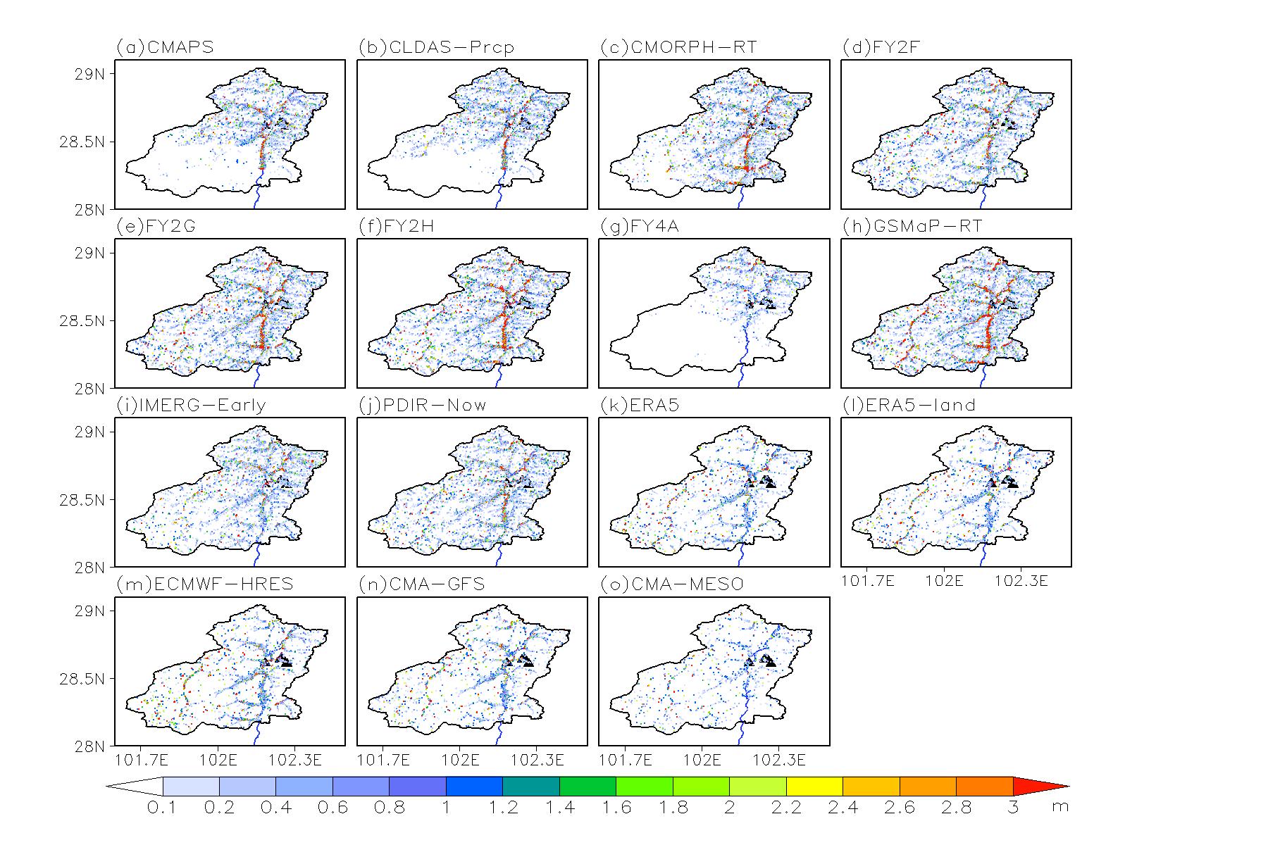 四川省位于中国西南部,地形复杂多变,海拔高度岭谷落差极大,是世界地形最复杂的地区之一。省内山区、高原、丘陵占比大,导致山洪、山体滑坡等自然灾害频发。据国家防汛抗旱指挥部和水利部统计数据显示,我国每年因山洪灾害导致的死亡人数接近900人,占洪涝灾害死亡人数的70%以上,因此,精准预报此类灾害成为气象和水文服务的重中之重。然而,在山地地区建设观测站面临诸多困难,包括高昂的人力物力成本、建设难度大以及后续设备维护难以保障等问题,导致观测网络难以完善,无法满足气象和水文监测的迫切需求。为了评估不同来源降水资料在水文模拟应用,研究团队对卫星反演降水、再分析降水资料、数值模式预报降水、多源融合降水资料等在山洪暴雨过程的应用进行分析,以弥补山洪监测不足。
