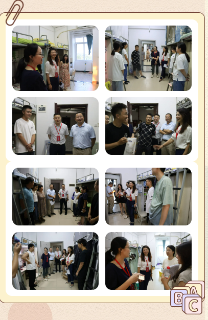 党委书记刘琰琰,院长张宇,纪委书记、党委副书记张晓亮,副院长华维,副院长曾胜兰,学生科科长刘宇,辅导员吴知之、毛璐、罗米娜、郝亮一行人走访新生宿舍,与新生亲切交流,关心新生在入学第一天的校内生活体验,对新生的学习生活表示关切。