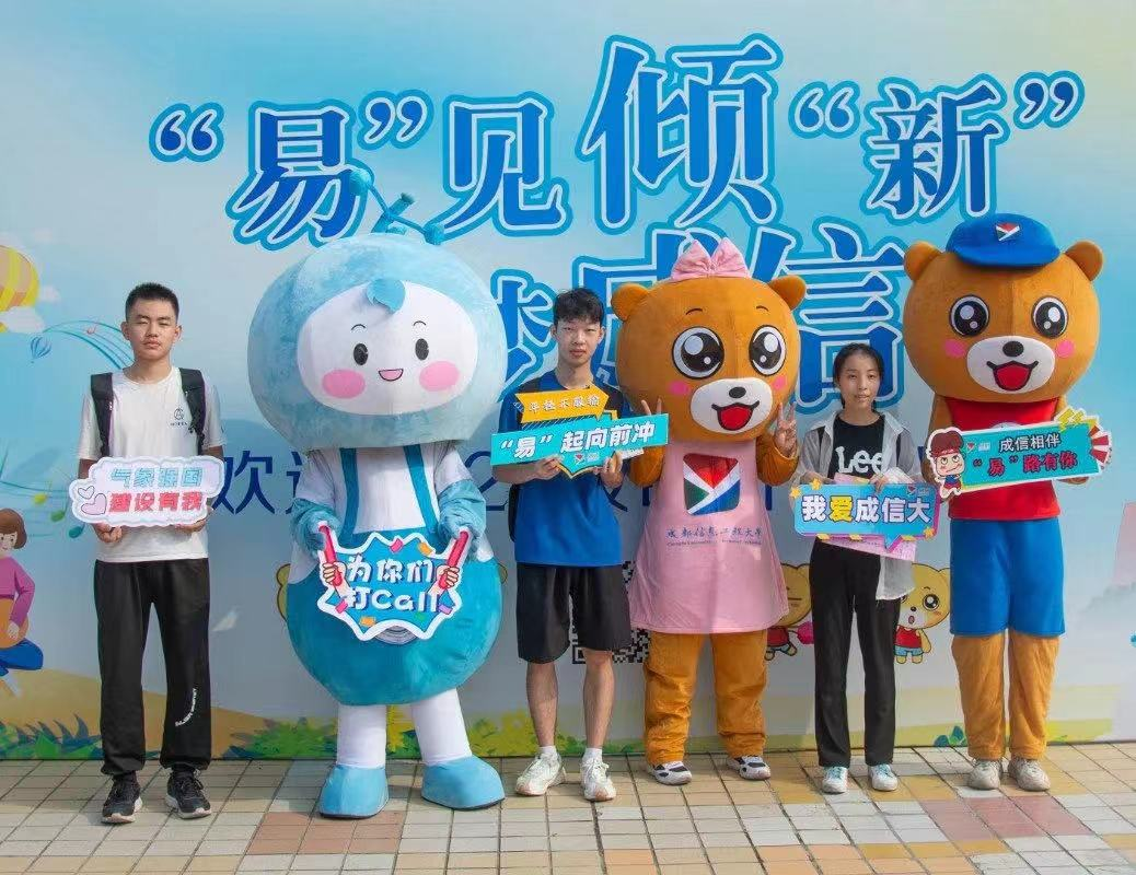 可爱的吉祥物——“云宝”,在迎新点,学院精心布置了迎新展牌、入学流程牌、丰富的介绍资料等等物料,只为新生能够轻松、快捷、便利入学。