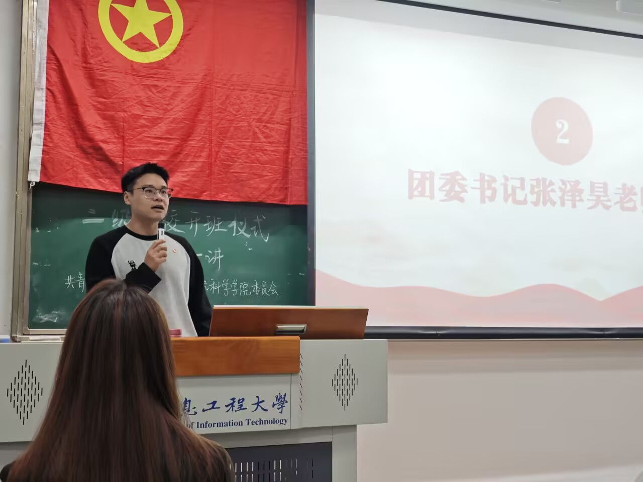 开班仪式在庄严的中国共青团团歌《光荣啊,中国共青团》中拉开帷幕。学院团委书记张泽昊老师致辞,他围绕团校学习的目标与意义,向学员们提出了三点要求:一要端正学习态度,筑牢理论根基;二要严守培训纪律,锤炼过硬作风;三要发挥模范作用,勇于担当作为。他强调,全体学员应将专业学习与服务社会紧密结合,努力成长为有理想、敢担当、能吃苦、肯奋斗的新时代青年。