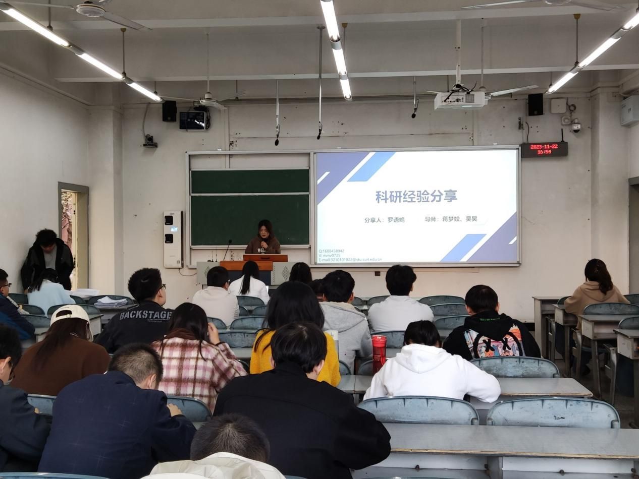 杨童和罗语嫣与同学们分享了她们的科研经验与心得。她们就时间计划安排、文献阅读技巧、科研入门方法、科研工具、编程学习以及论文撰写及SCI投稿等内容进行了深入交流。同时也给出一些建议,比如:多阅读文献、多动手操作,制定合理的计划,把握好自己的进度和节奏,注意身心健康发展等等。通过两位学姐的分享,同学们受益匪浅,对科研工作的认知有了进一步提升。