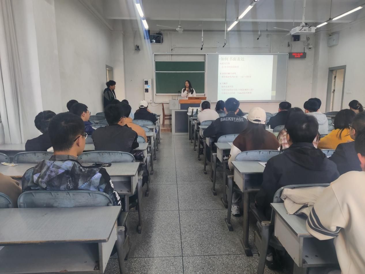 蒋梦姣老师从“科研经历分享”、“如何做口头报告”、“如何进行书面表达方式”三个方面,向同学们分享了她在博士后阶段的研究经历和学术沟通经验。她强调了清晰地表述想法和准确地传达观点的重要性,并分享了她在学术写作和口头表达方面的技巧。