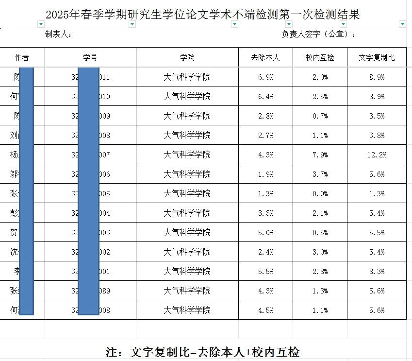 2025年春季学期研究生学位论文学术不端检测第一次检测结果