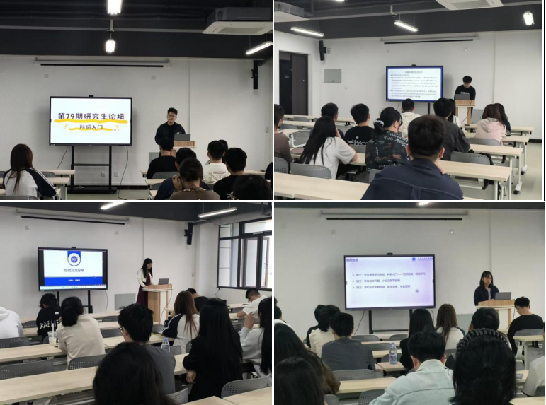 2025级博士生许一洲围绕“科研与申博经验”展开主题分享。他系统解析了当前高校博士招生的主要政策,并建议申请者提前与目标导师建立联系、合理规划论文发表进程。同时,许一洲强调应在科研项目实践、学术会议参与等方面持续积累成果,为有意申请博士的同学提供了清晰实用的参考指南。